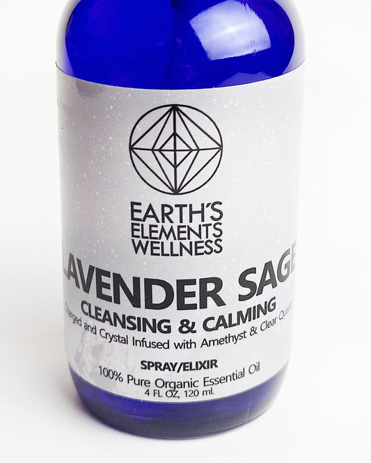 Lavender Sage Essential Oil Spray with Amethyst & Clear Quartz Crystals
