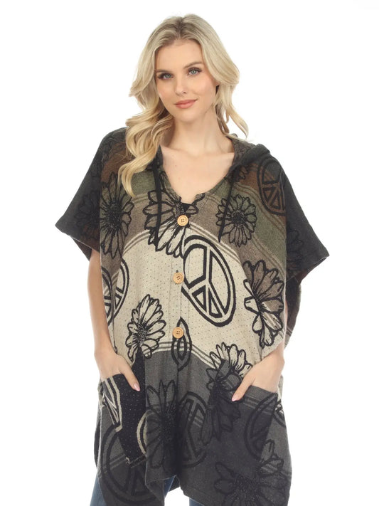 Sunflower Peace Hooded Poncho