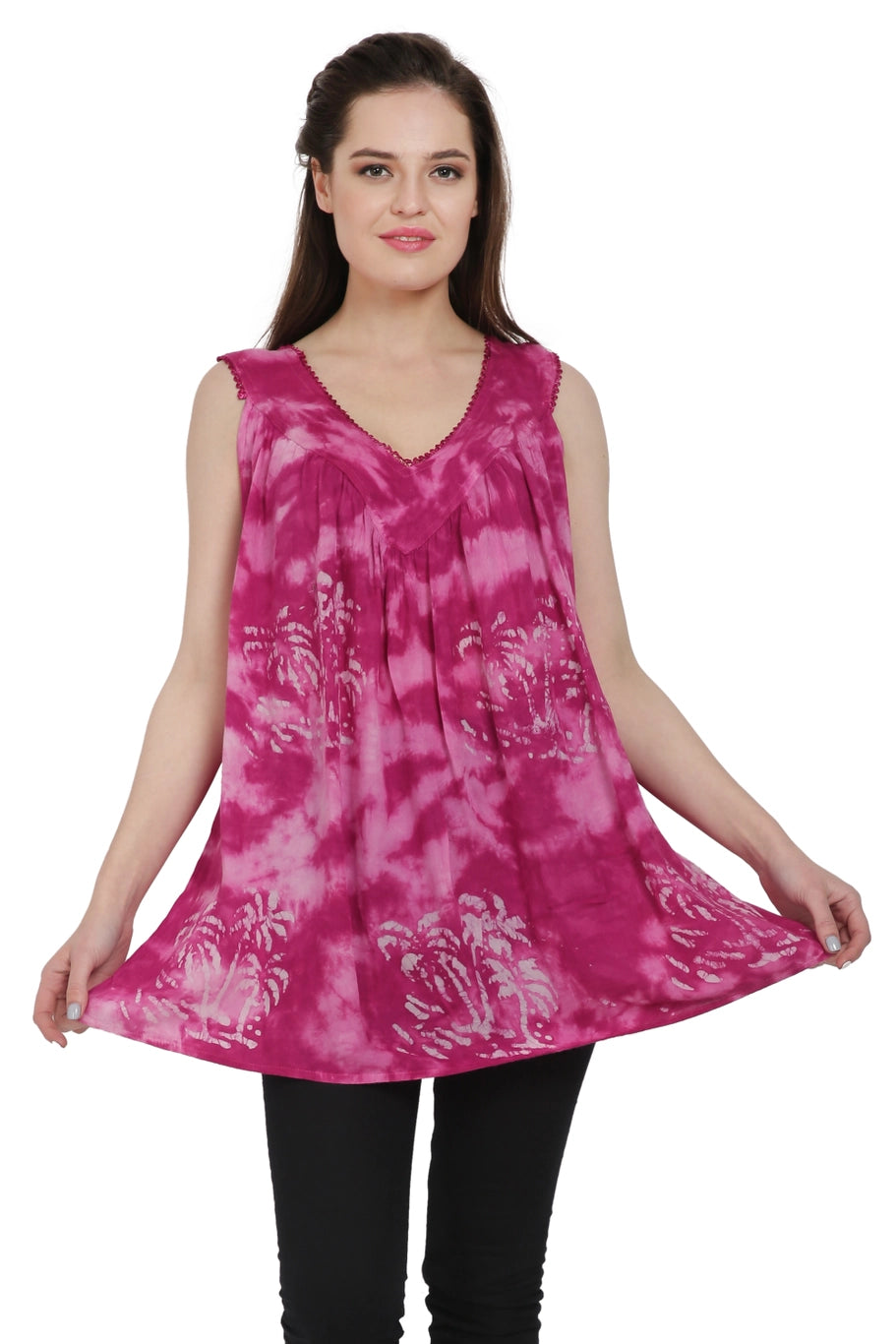 Stay cool and stylish in this playful Palm Tree Tie Dye Tank Top, crafted from soft 100% rayon for ultimate comfort. Featuring a vibrant batik palm tree design, it’s a breezy one size fit that suits most sizes.